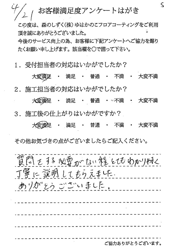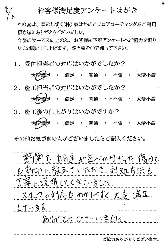 また施工時も丁寧な説明や配慮をして頂き、大変満足です。