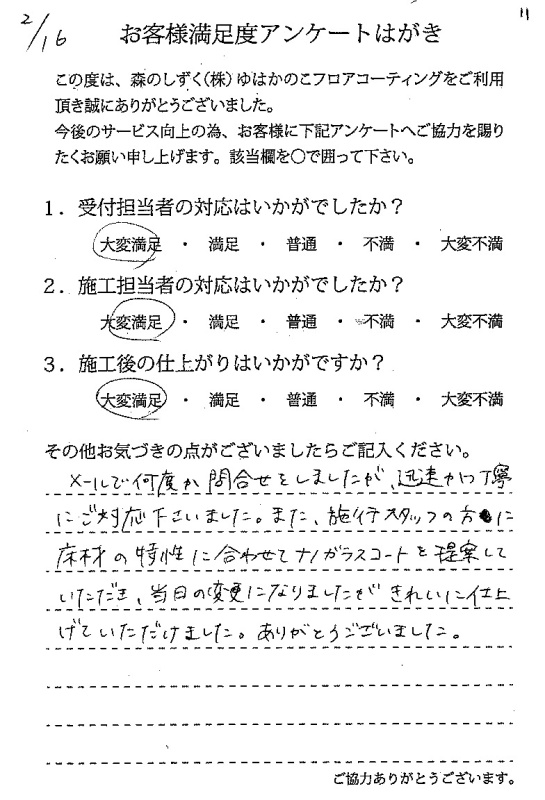 施工前のメールのやり取りでは対応が早く、不安、疑問を解消できました。